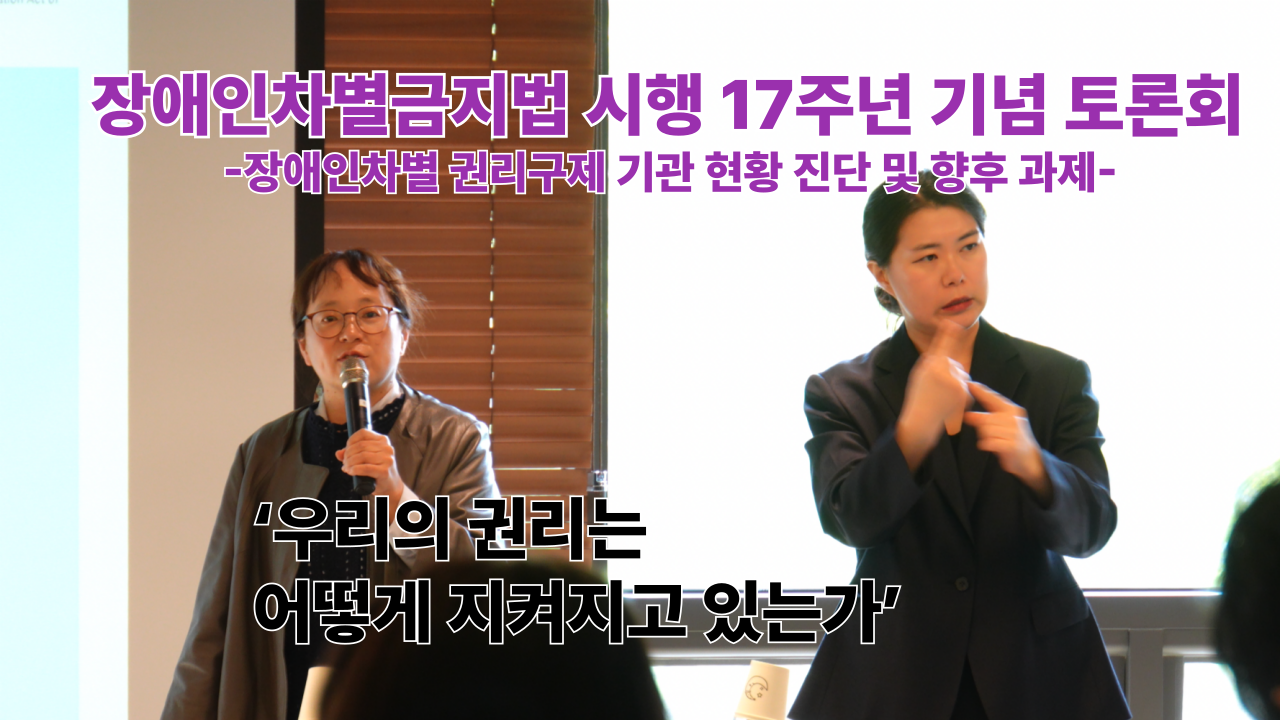 장애인차별금지법 시행 17주년 기념 토론회 '장애인차별 권리구제 기관 현황 진단 및 향후 과제' 가 열려 그 현장을 다녀왔습니다.